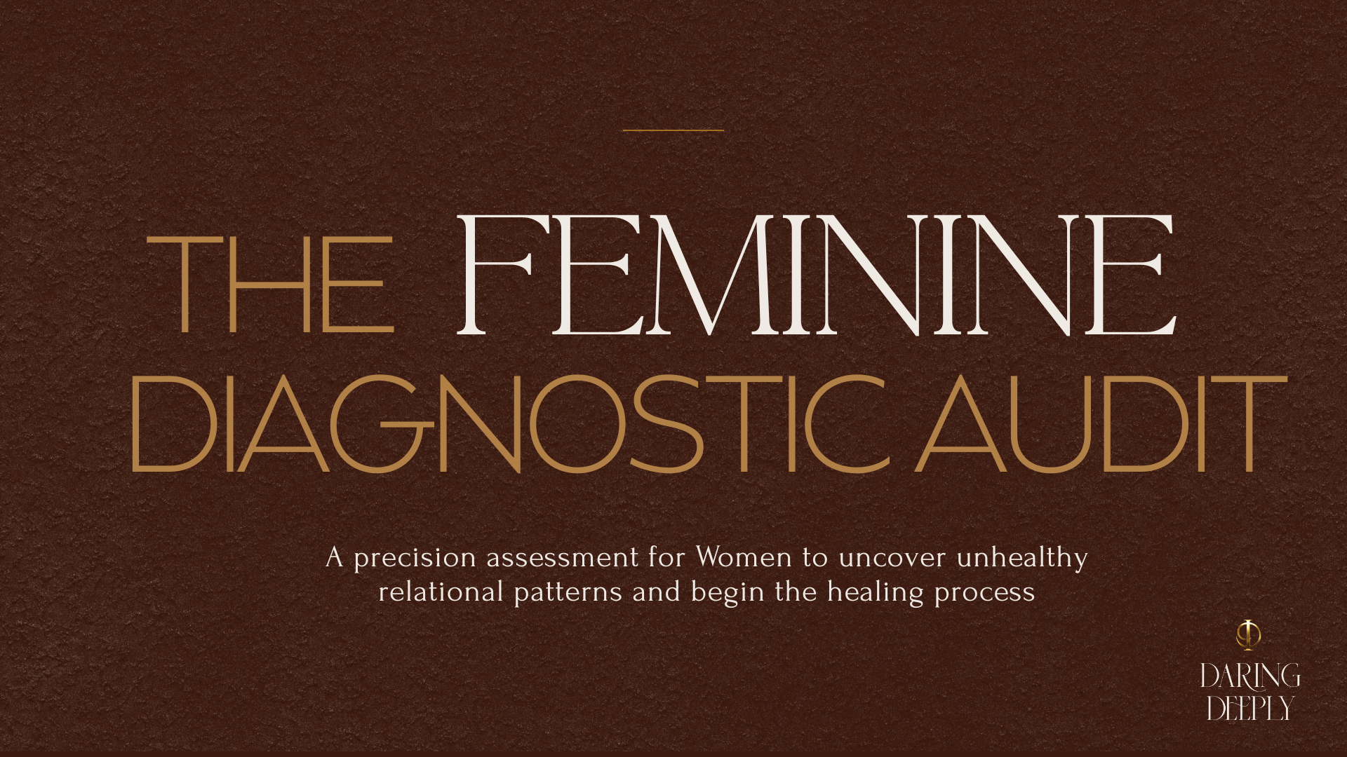 The Daring Deeply⢠Feminine Diagnostic Audit is a personalized, trauma-informed diagnostic to uncover whatâs keeping you stuck in your head, out of your body, and disconnected from your feminine essence. If you're ready to feel softer, safer, and more deeply supportedâyouâre in the right place.